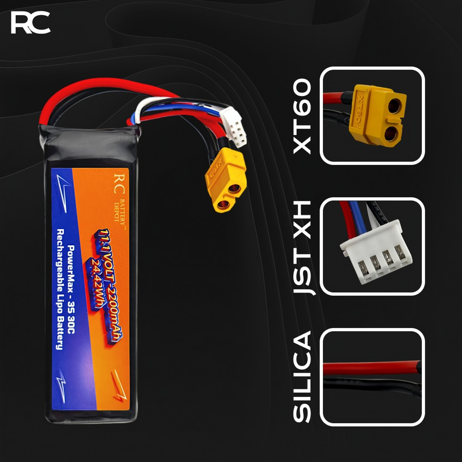 Experience superior performance with the RC Battery Depot 11.1V 2200mAh 3S 30C LiPo Battery.